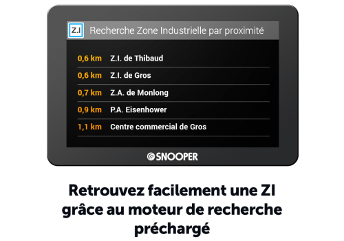 SNOOPER a recensé pour vous les 14 000 zones industrielles de France mais également toutes celles d'Europe. Le moteur de recherche par Zones Industrielles permet ainsi de trouver facilement tous vos clients sans connaître l'adresse exacte de livraison. Vous pourrez également retrouver aisément les stations-service PL par marque (AS24, TOTAL GR,...) sur votre parcours. SNOOPER PL2200 a aussi recensé pour vous plus de 120 000 points d'intérêt tels que les restaurants routiers, les stations de lavage PL, les aires de repos PL, les parkings sécurisés PL, ainsi que les concessionnaires PL par marque.